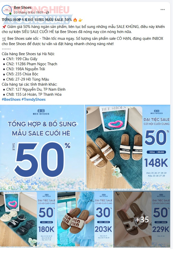 Theo thông tin giới thiệu trên trang Facebook có tên là Bee Shoes với hơn 199 nghìn lượt người theo dõi, hệ thống cửa hàng giày nữ này sở hữu 5 cửa hàng tại Hà Nội, 1 cửa hàng tại Ninh Bình (thuộc tỉnh Nam Định cũ), 1 cửa hàng tại Thanh Hóa.