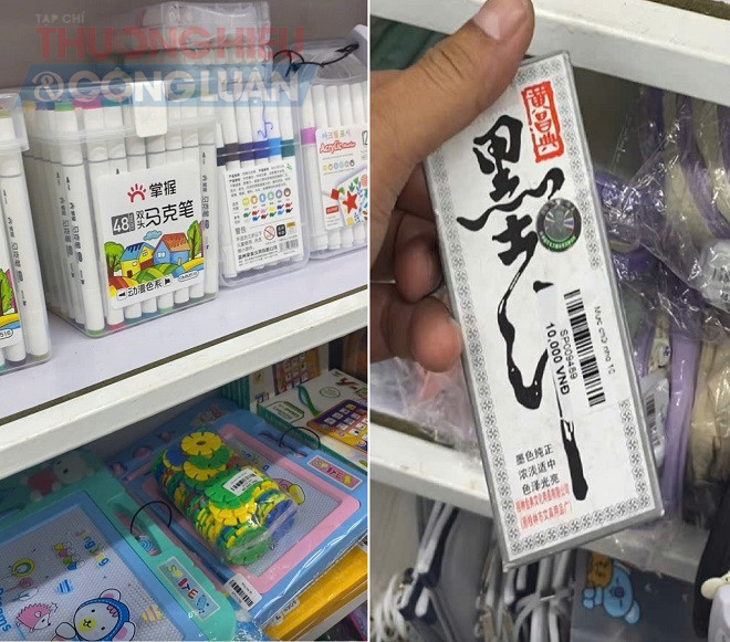 Cũng tại Ohoh Xinh Hải Hậu, phóng viên ghi nhận ngoài các sản phẩm về thời trang, thắt lưng da, mỹ phẩm có dấu hiệu không rõ nguồn gốc xuất xứ, cơ sở này còn bày bán đa dạng các mặt hàng đồ dùng tiện ích, đồ dùng học tập, đồ chơi trẻ em. Theo đó, khu vực này đang được bày bán đồ lưu niệm, đồ dùng tiện ích và đồ chơi trẻ em,… ngoài tem nhãn bằng chữ Trung Quốc, hầu hết các sản phẩm này đều không được dán tem nhãn phụ bằng tiếng Việt, “tù mù” về nguồn gốc xuất xứ.